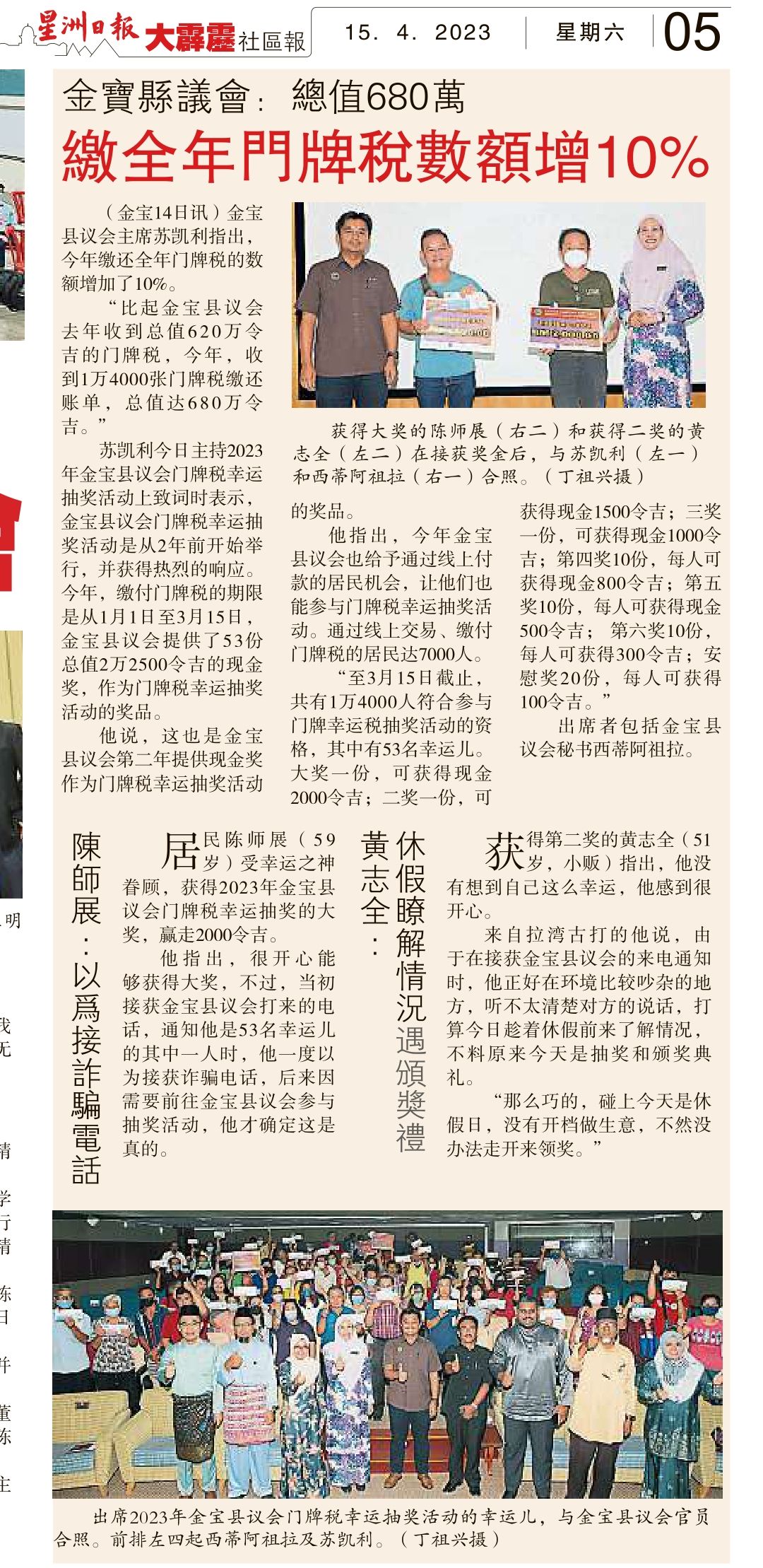 Majlis Penyampaian Cabutan Bertuah Cukai Taksiran Tahun 2023 Majlis Daerah Kampar