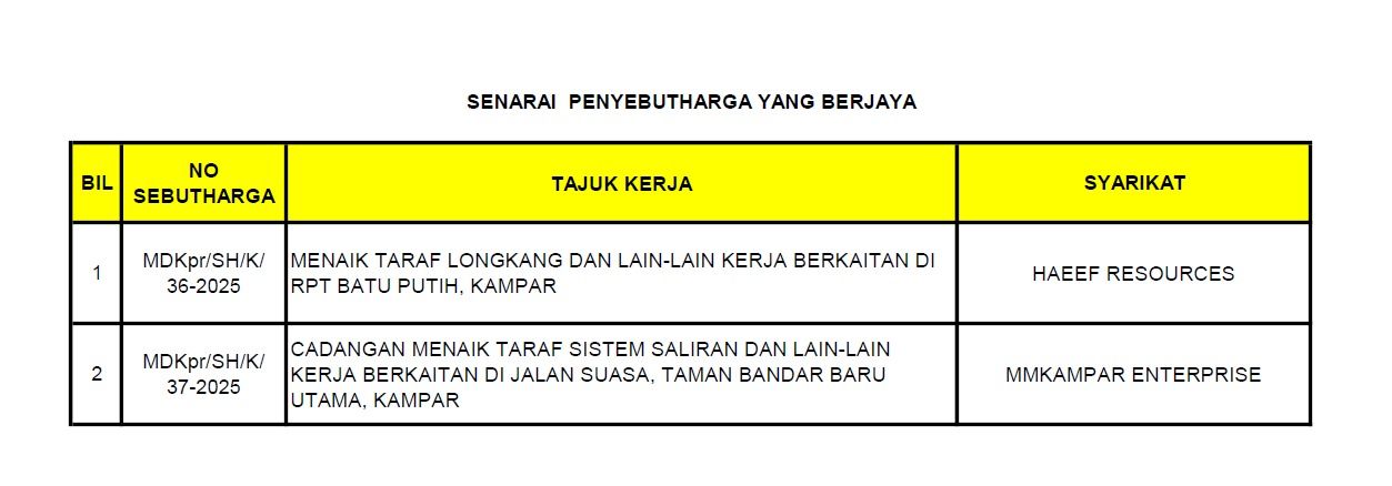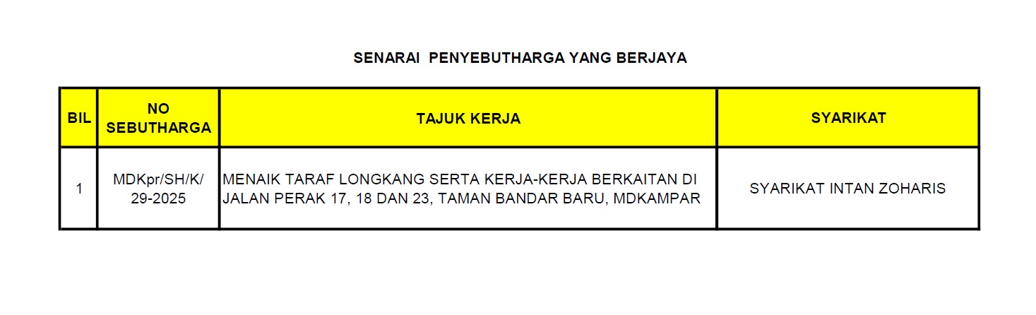 SENARAI PENYEBUTHARGA YANG BERJAYA | | MUAT TURUN |