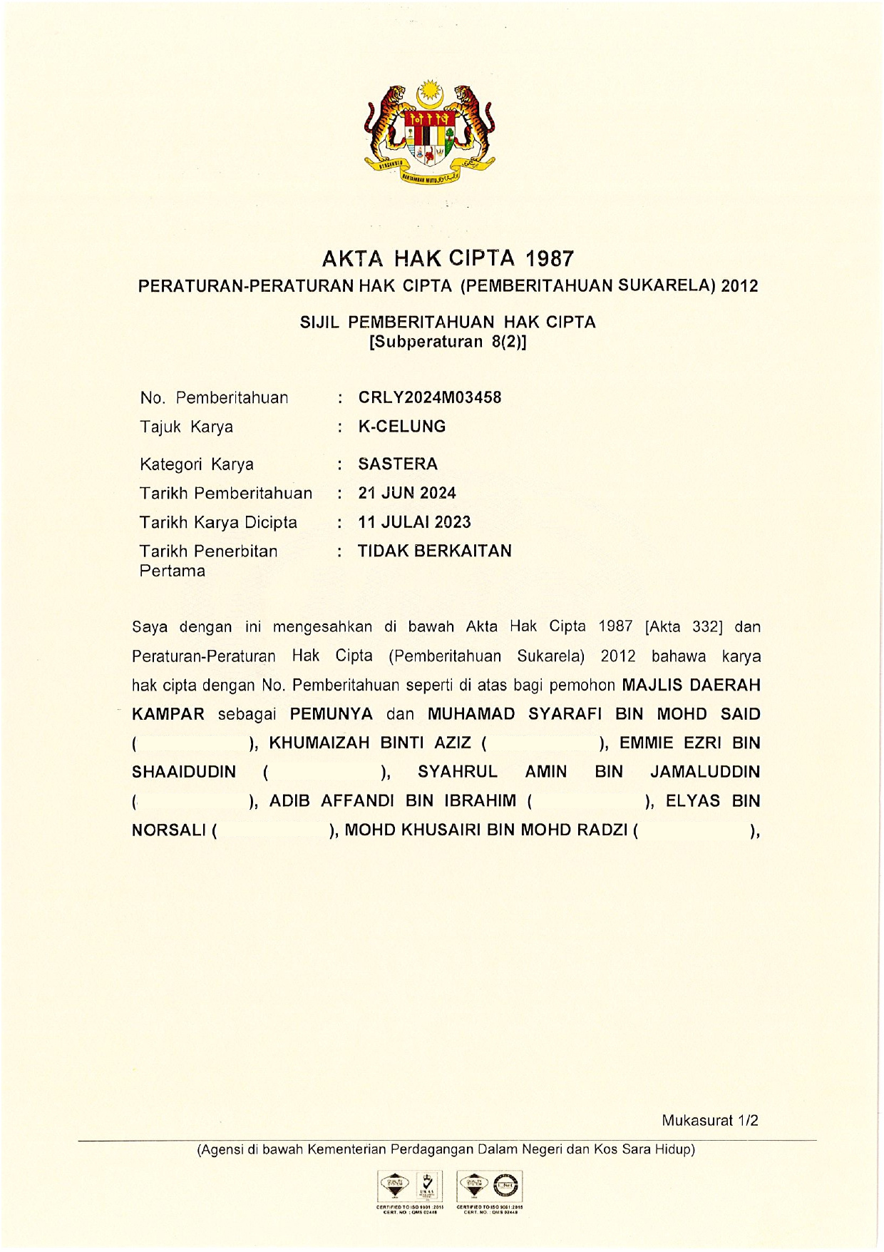 PENYERTAAN ANUGERAH INOVASI & KUMPULAN INOVATIF DAN KREATIF (KIK) MAJLIS DAERAH KAMPAR