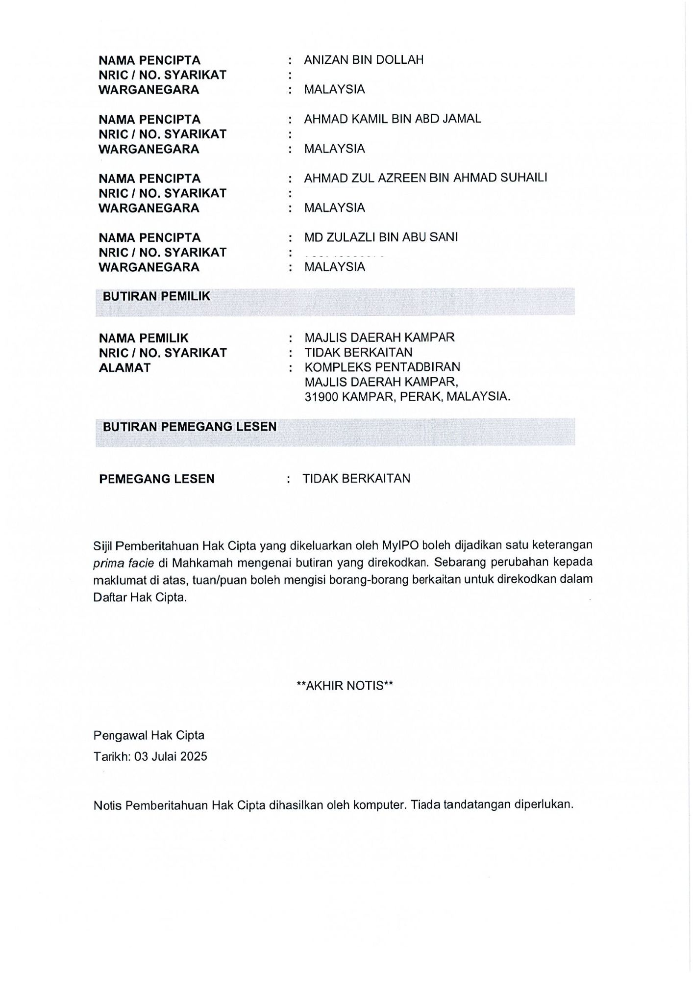 MDKpr, Kompleks Pentadbiran MD Kampar, Jalan Iskandar, 31900 Kampar, Perak