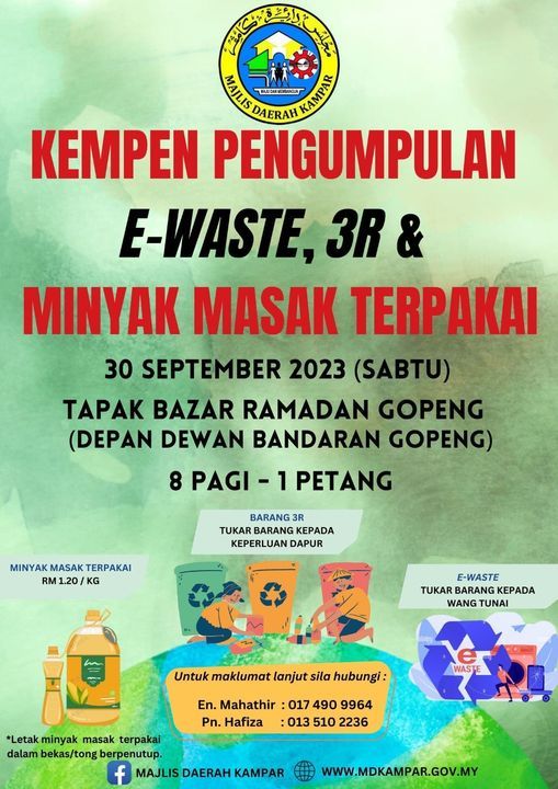 MDKpr menyeru semua penduduk Kampar supaya sentiasa mengamalkan amalan kitar semula di rumah masing-masing bagi melestarikan alam sekitar.