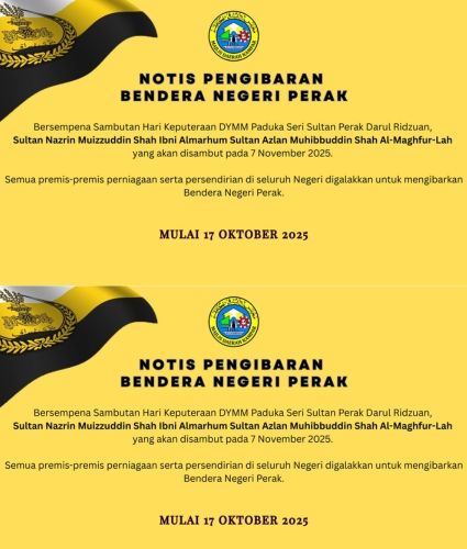KIBARAN BENDERA NEGERI PERAK SEMPENA KEPUTERAAN DYMM PADUKA SERI SULTAN PERAK DARUL RIDZUAN