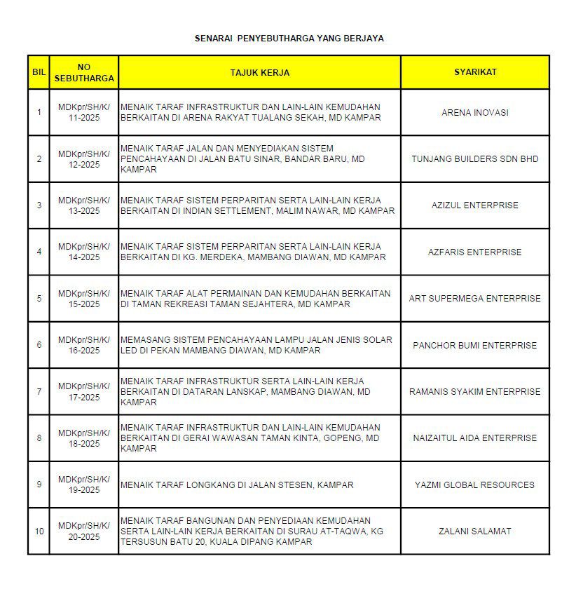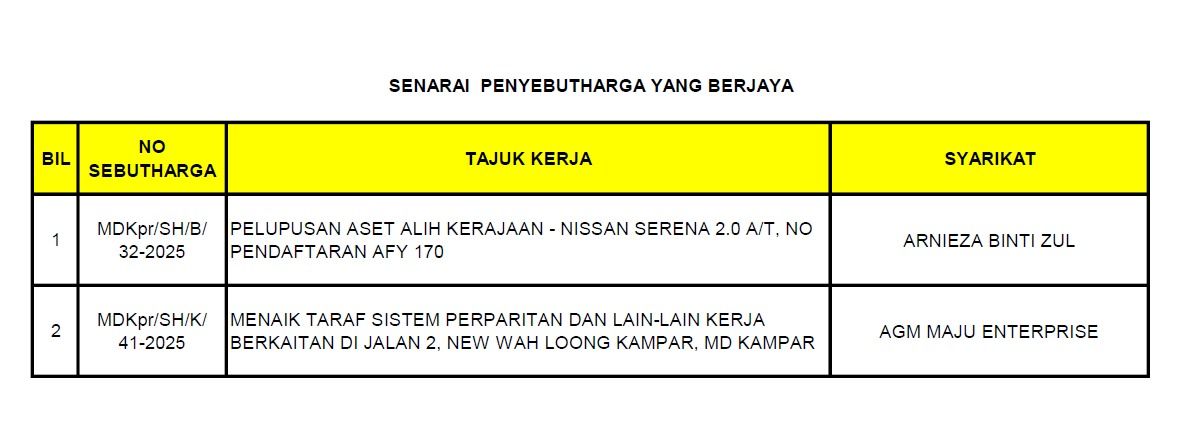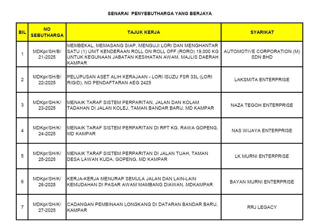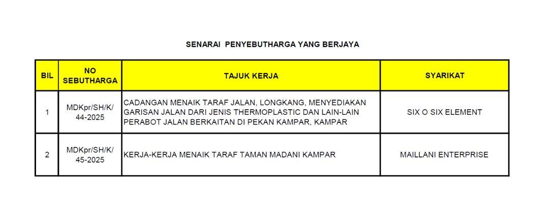 SENARAI PENYEBUTHARGA YANG BERJAYA | | MUAT TURUN |